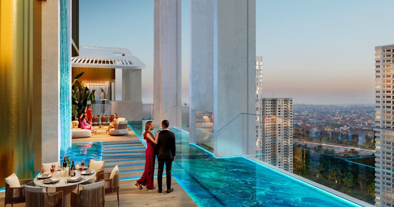 The project inspired by the falling water cascade charms everyone. Here, the day commences with sunkissed mornings; feast at the lounge, and the app-based valet service that gets your car ready as you walk down the grand lobby.