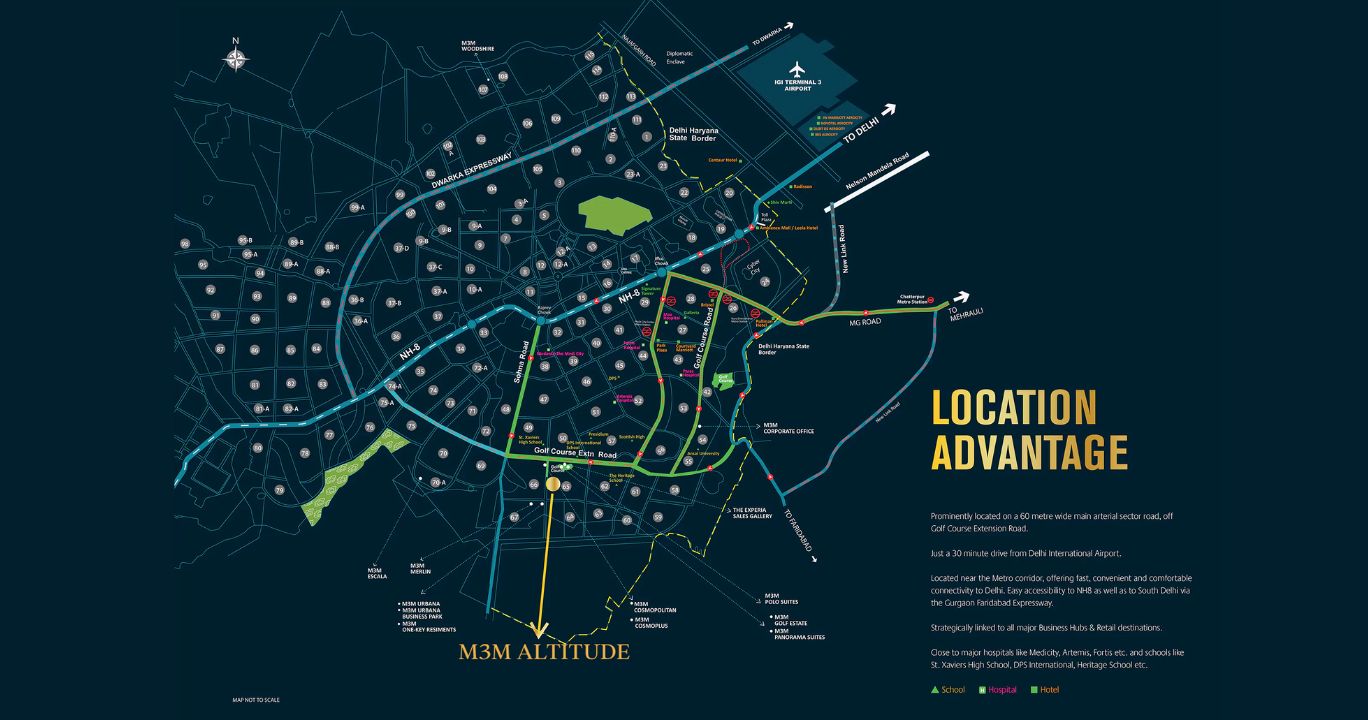 The super luxury suites outdo nobles’ expectations by every means. M3M Altitude enjoys proximity to the Dwarka expressway. This fractionally operational giant road unclogs connectivity promising timely arrival at meetings and offices.M3M Altitude in proximity to Dwarka expressway, shares nearness to Golf Course road extension. The proximity to the expressway, brings shopping and dining experiences near to home. With the happening lifestyle close to the expressway, the project records acme of capital appreciation which is estimated to sky-rocket in the future.